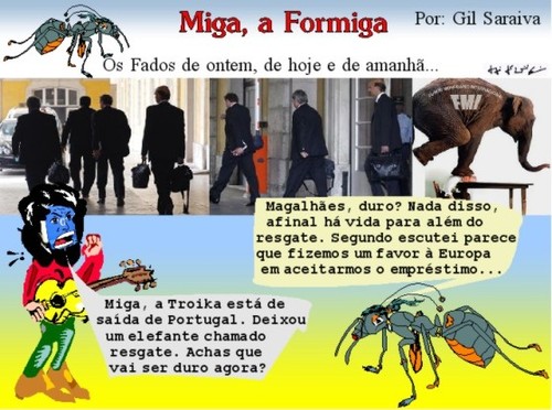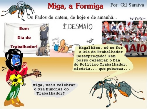 Sátiras à atualidade portuguesa (e alguma internacional), nas áreas política, de sociedade e desportiva através do Humor gilcartoon com Miga, a Formiga, nos seus eternos diálogos com outros personagens...