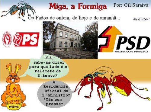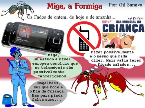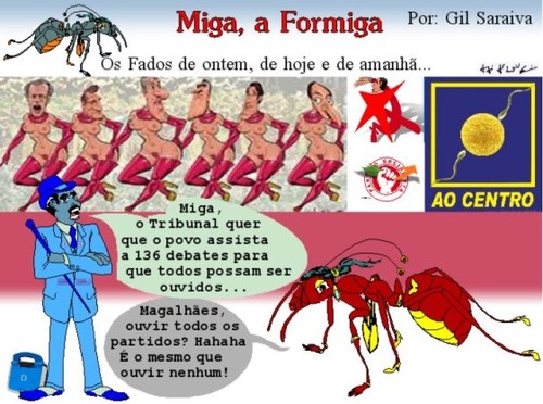 Sátiras à atualidade portuguesa (e alguma internacional), nas áreas política, de sociedade e desportiva através do Humor gilcartoon com Miga, a Formiga, nos seus eternos diálogos com outros personagens...