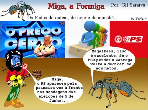Sátiras à atualidade portuguesa (e alguma internacional), nas áreas política, de sociedade e desportiva através do Humor gilcartoon com Miga, a Formiga, nos seus eternos diálogos com outros personagens...